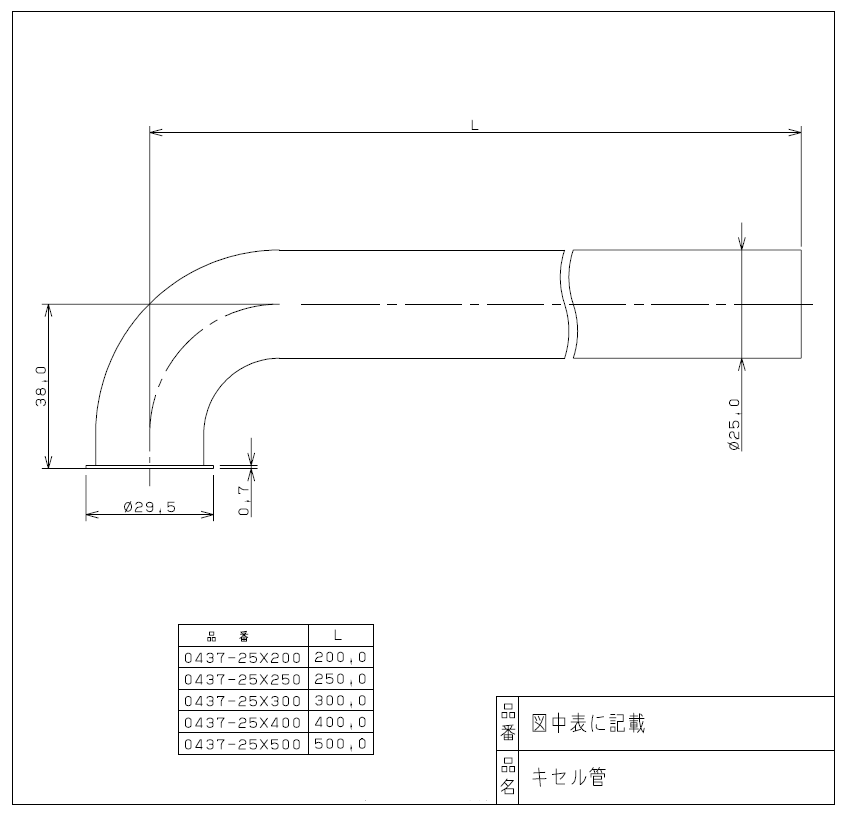 カクダイ キセル管 品番:0437-25X200 JAN:4972353043712